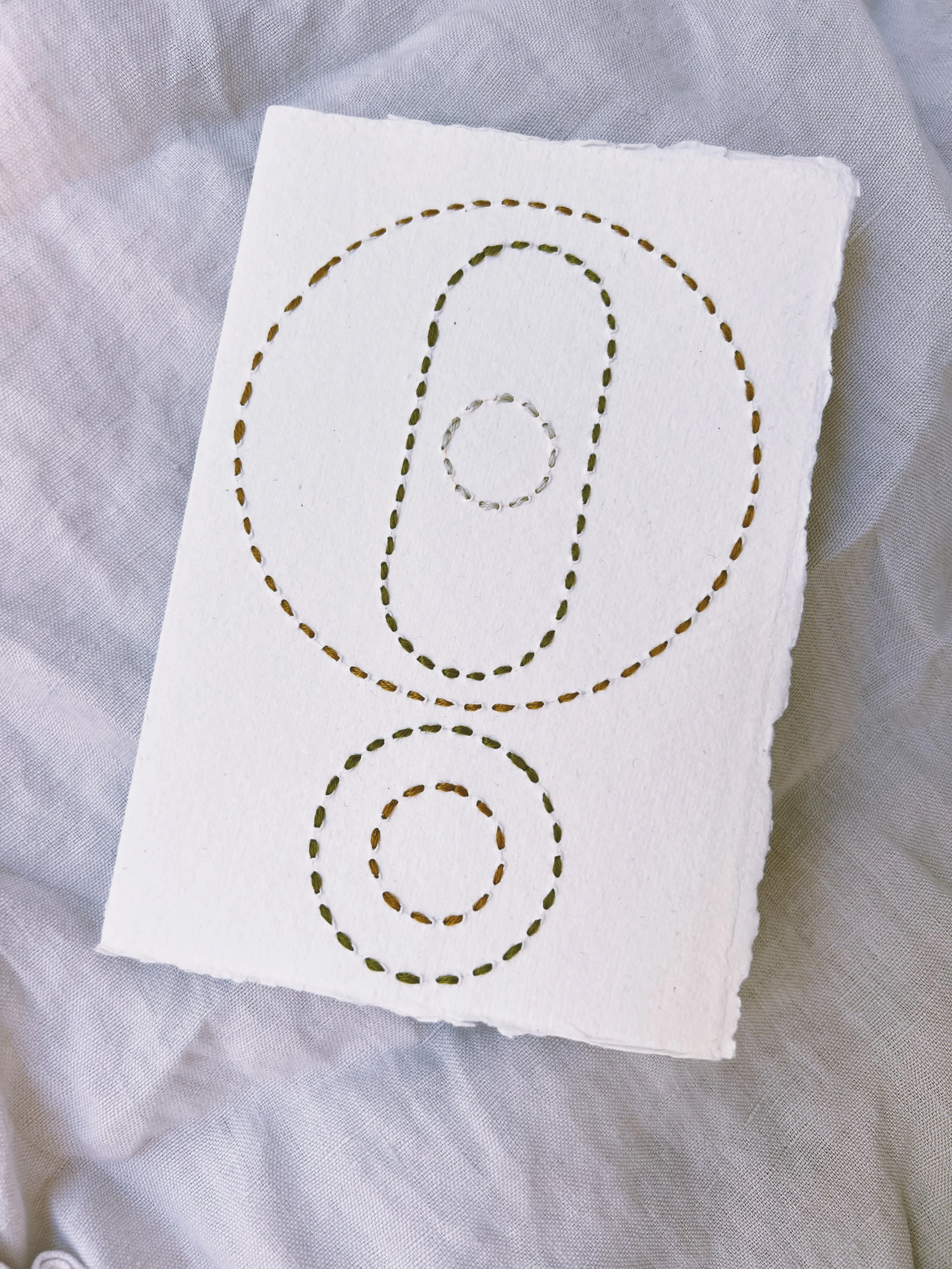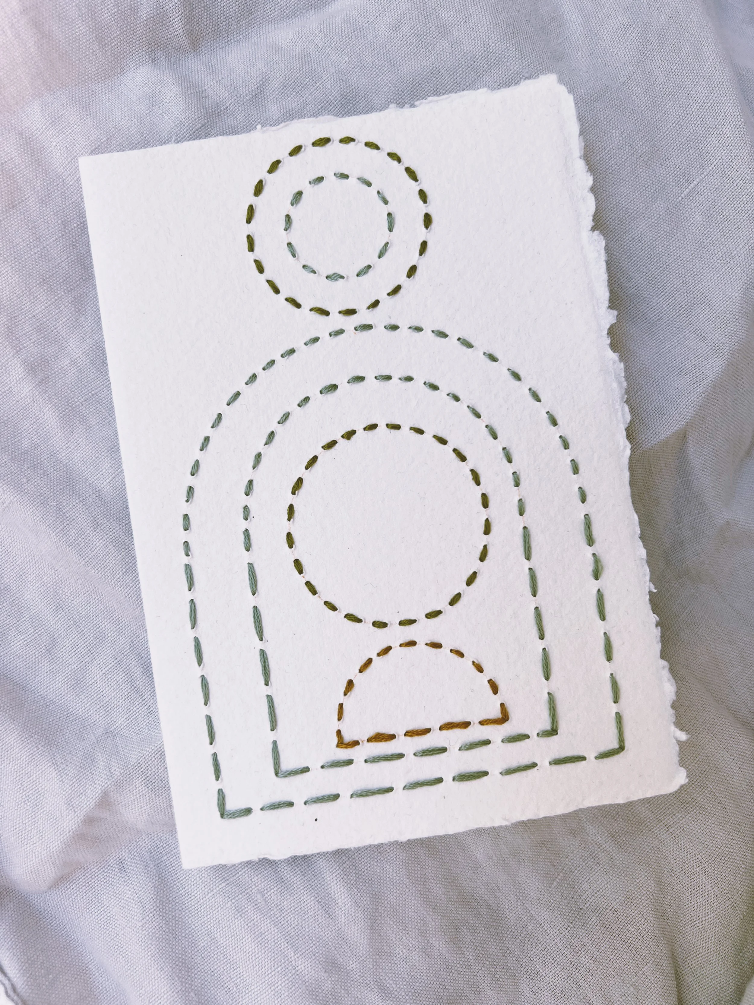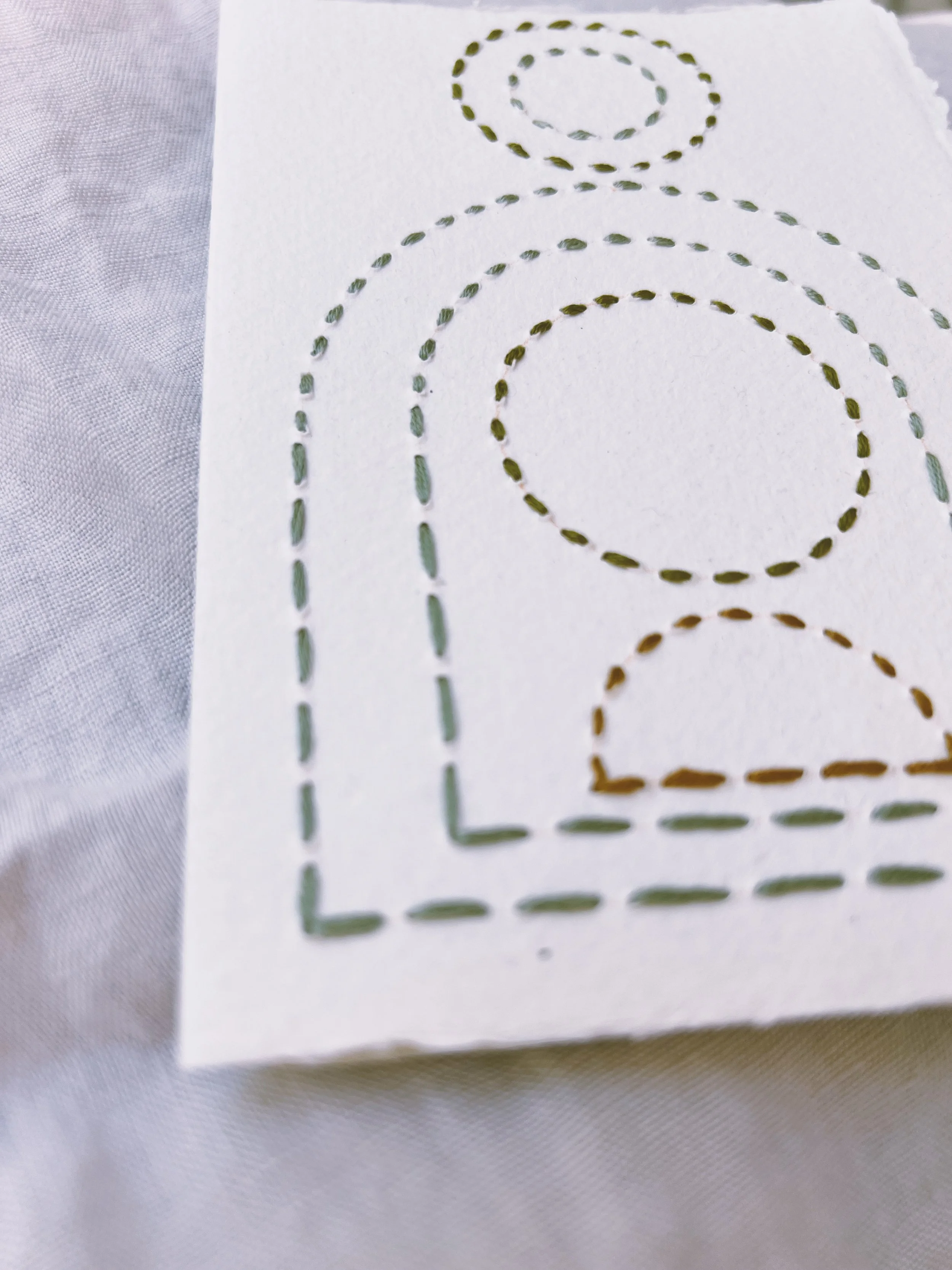 Each card has hand sewn with cotton threads on a hand made recycled paper. Besides using it for seasonal greetings, you can frame it as an art piece.