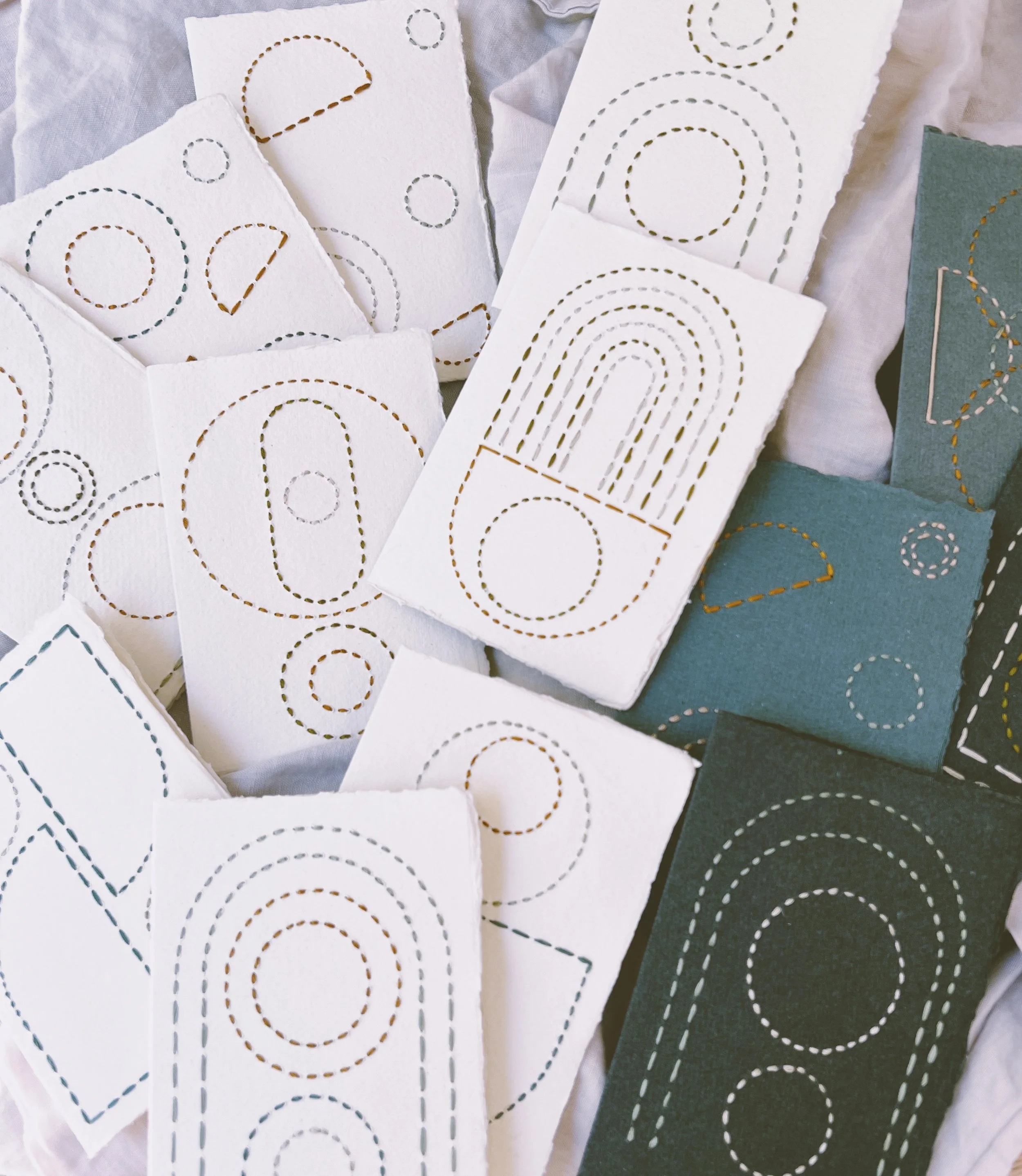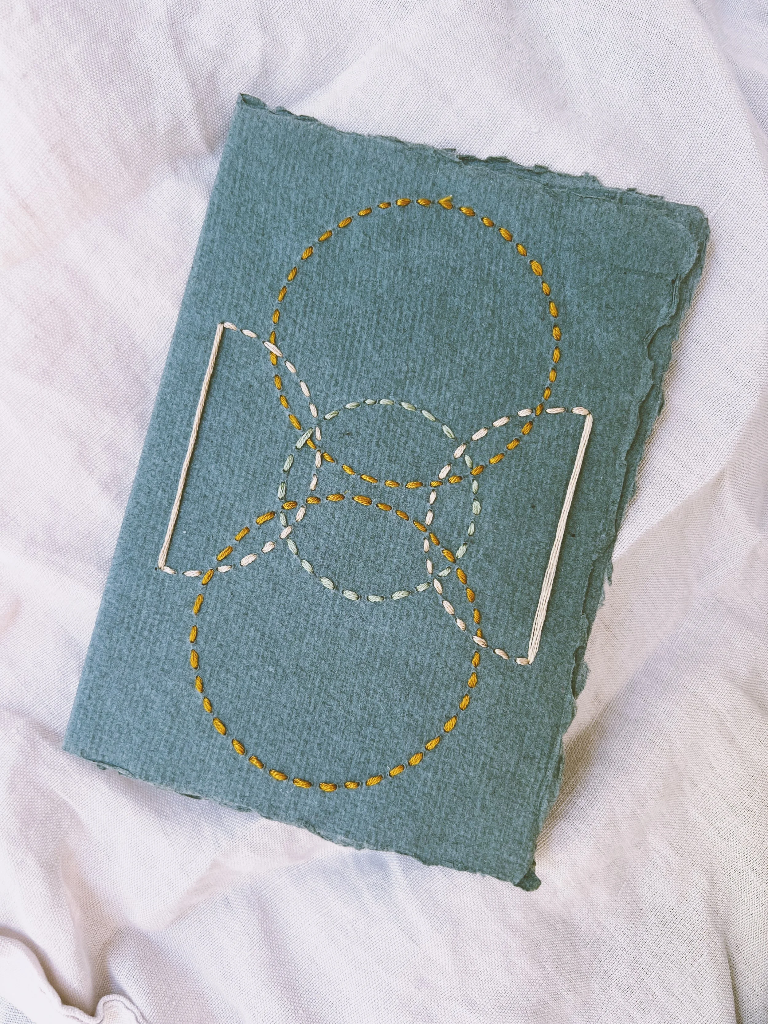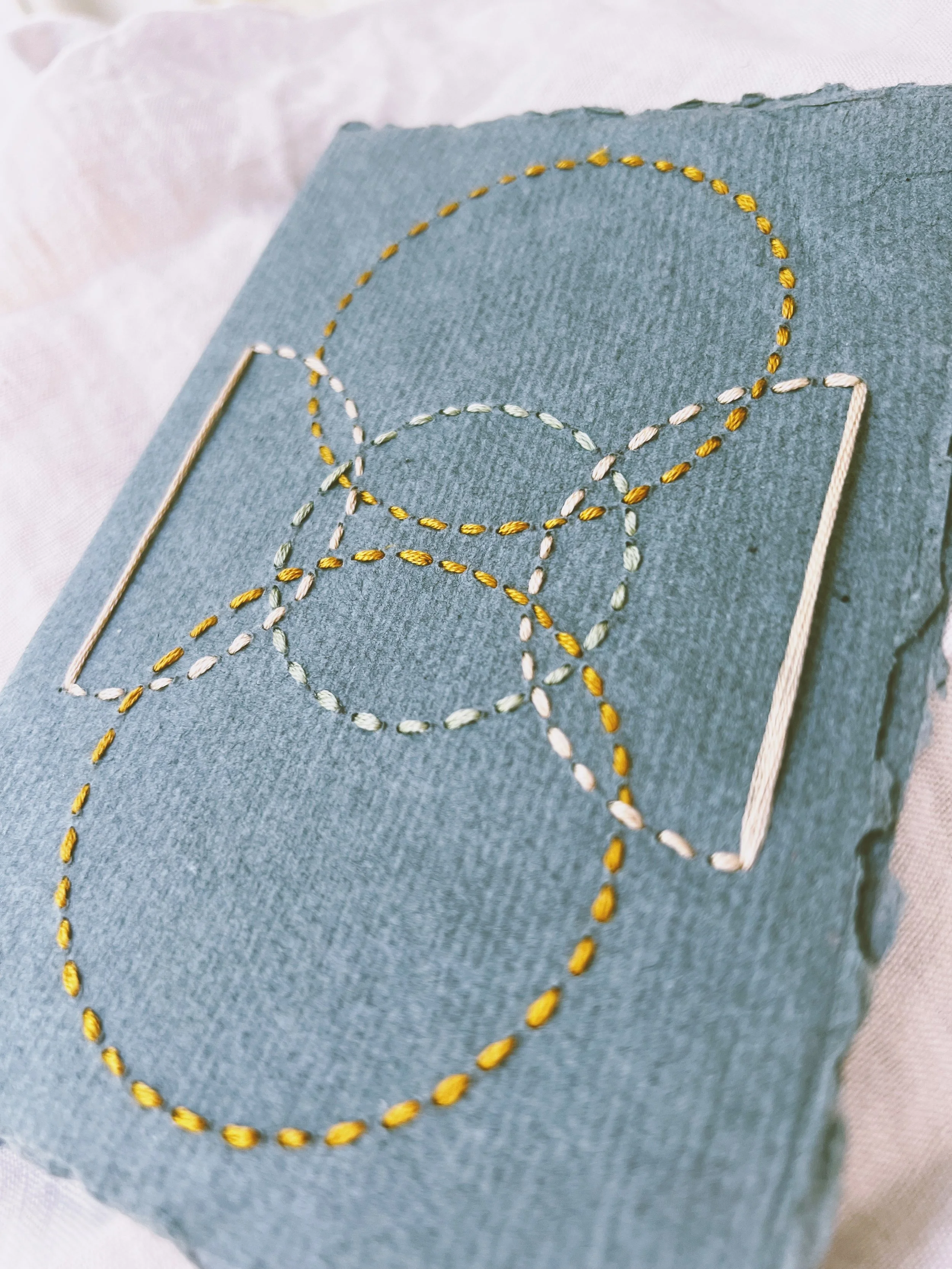 Each card has hand sewn with cotton threads on a hand made recycled paper. Besides using it for seasonal greetings, you can frame it as an art piece.